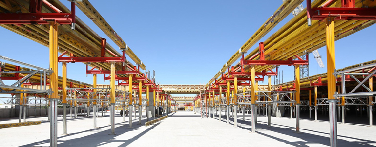 - The most easy and flexible table Formwork System for all types of slabs, consisting of steel props, tripod, four-way head, H20 timber beam and shuttering panel.